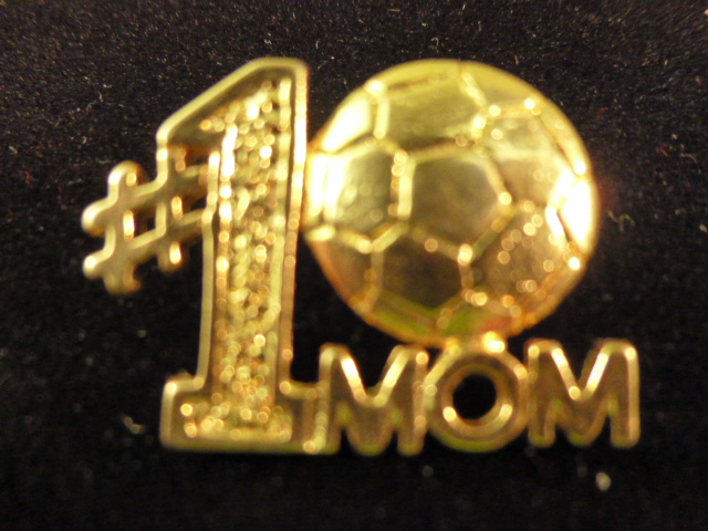 #1 Soccer Mom 1″ Gold Finished Pin.