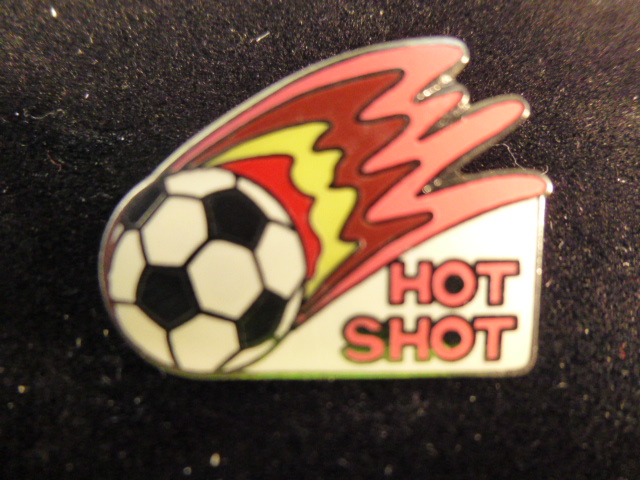 Hot Shot Soccer 1 Inch Black Anodized Finish Cloisonne Pin.