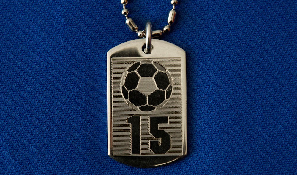 1.25x.75″ brass nickle hand engraved diamond etched dog tag on 20 inch ball chain. Numbers currently available 1-25. Other numbers may be available by special order.