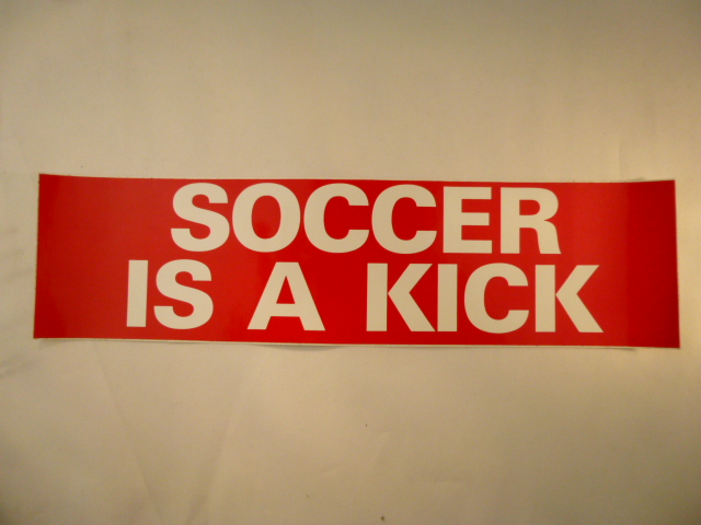 A 11 1/2″ x 3″ Soccer Bumper Sticker that can be attached to any smooth surface. The sticker is red with white 1 1/4″ Letters.