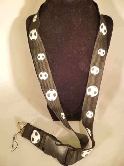 20″ Soccer Lanyard with Key Chain and Cell Phone Attachments. Snap off accessory strap can separate from Neck Lanyard. Strap is 1″ wide.