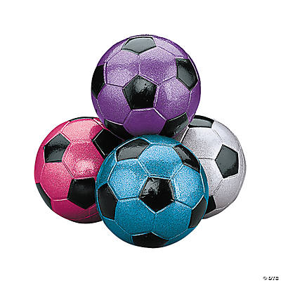 These hi-bounce balls take on the pattern of soccer balls with a metallic sheen. Ages 3+