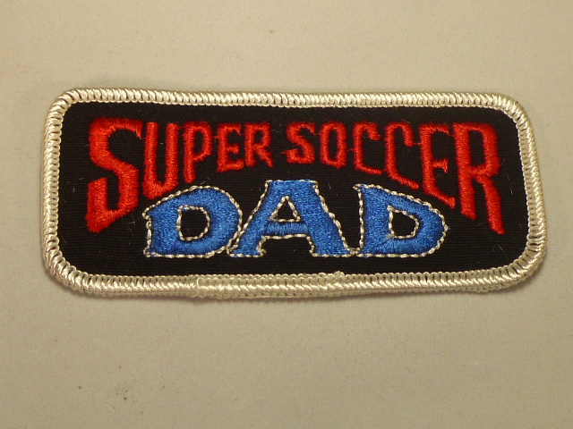 Super Soccer Dad Patch 3 1/2″ x 1 1/2″. Background may allow heat transfer application, but it is best stitched on garments.