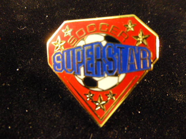 Superstar Soccer 1 Inch gold finish Die Struck Soft Enamel pin with clam fastener.