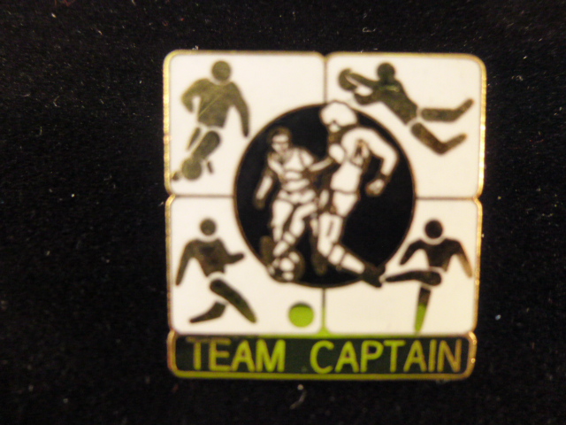 Team Captain 1 inch gold finish Cloisonné Pin with clasp attachment.