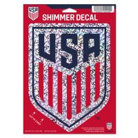 4.5″ x 6″ US Soccer Shimmer Decal. The shimmer is made with a micro dot holographic background that is tinted to the logo’s colors. Made in the USA. Officially licensed