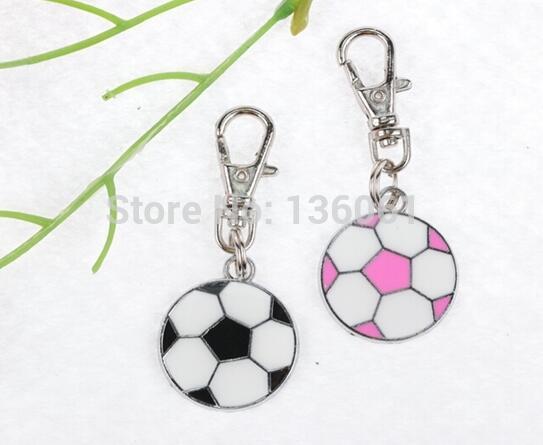 Soccer Zipper Pull / Bag Tag / Key Chain Accessory – Silver Zinc Alloy and enamel. The Ball is about 3/4″. Available in Black and White or Pink and light Beige
